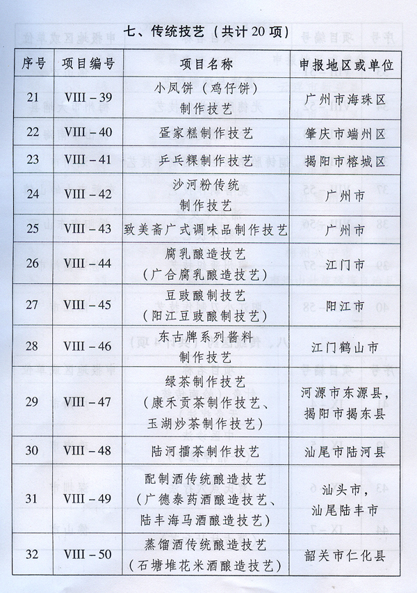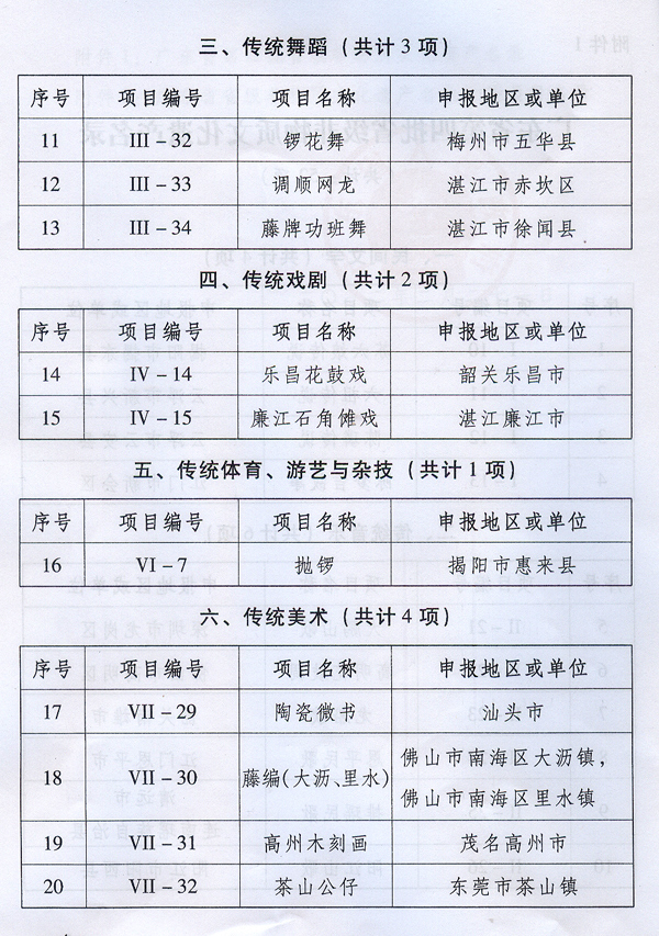 關(guān)于批準并公布廣東省第四批省級非物質(zhì) 文化遺產(chǎn)名錄的通知